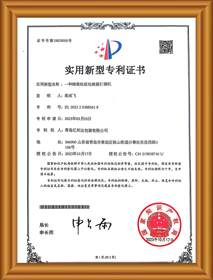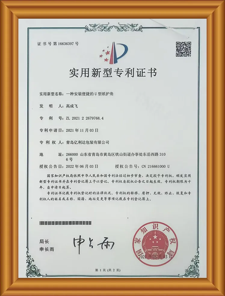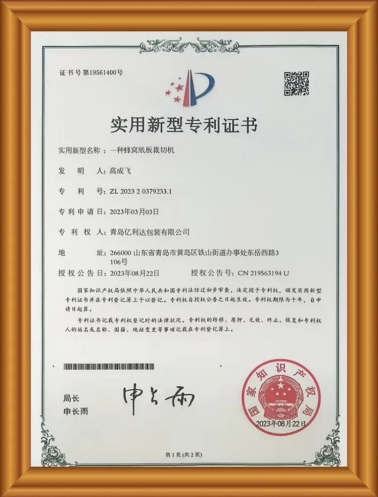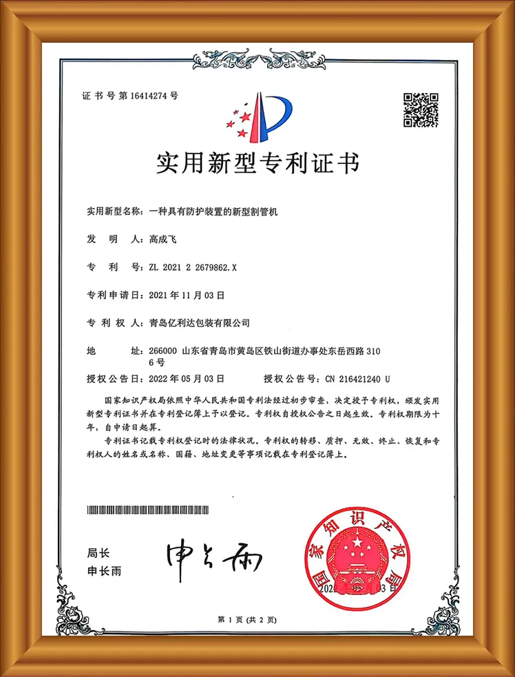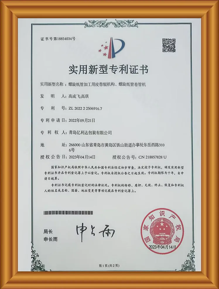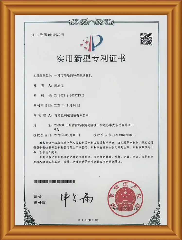 Tá ár gcuid táirgí deimhnithe FSC, deimhnithe ISO9001, seacht bpaitinní a shealbhú, lena n-áirítear meaisín feadáin páipéir U-chruthach áisiúil, deimhniú Fiontar Beag agus Meánmhéide Speisialaithe agus Nuálaíoch, tástáil Puni, agus deimhniú Soláthraí Cáilíochta.